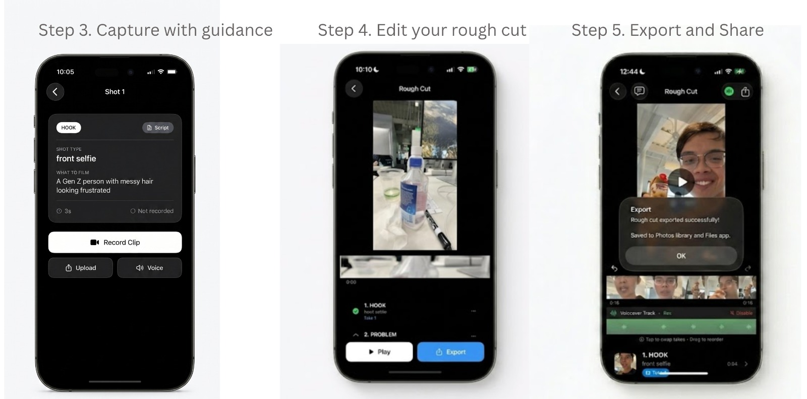 Shipped a complete Storyboard-to-Export pipeline within the 24-hour window. The AI-driven motion guidance system compressed a multi-day production workflow into a single mobile session — what traditionally requires a pre-production day, a shoot day, and an editing session now takes minutes. The project validated that AI motion direction can make professional-grade, trend-relevant video production accessible to anyone.